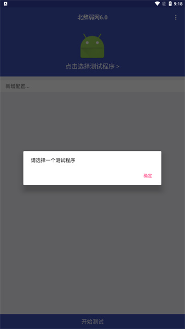 成功登陆后,点击【点击选择测试程序】按钮,选择待测试的弱网工具,然后点击下方的【开始测试】按钮,第一次启动的时候需要对悬浮窗权限进行授权,部分机型会弹出开启VPN服务的确认框,点击确认。