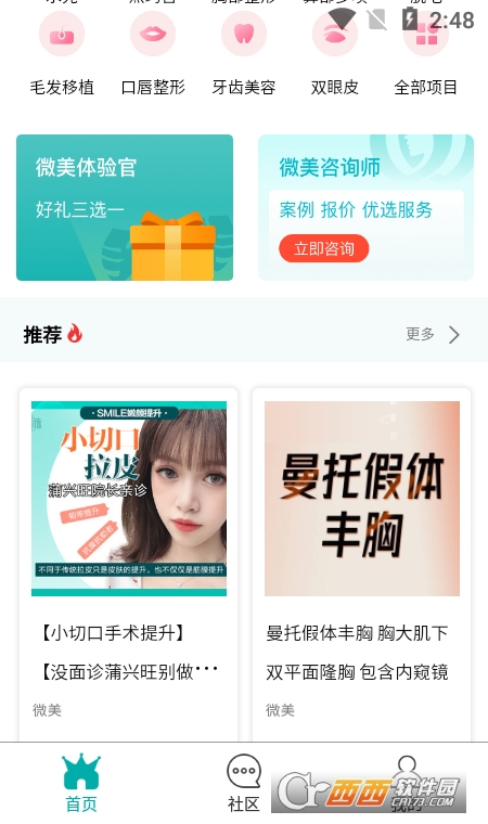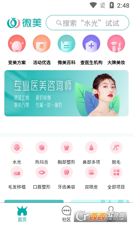 微美医美app是一个不错的医美整形服务平台,平台上面提供了十分丰富的医美项目,同时还有很多优秀的整形专家为您提供医美建议,让您在变美的路上少花冤枉钱,需要的可以来鳄斗163下载使用