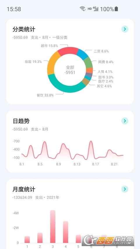 5、超多统计 - 饼图,条形图,折线图,每月收支一目了然
