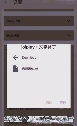 4、找到并打开【joiplay+文字补丁】文件夹,在其中你会看到【思源黑体.ttf】字体文件。若未找到该字体,你可以通过搜索引擎进行下载并导入。