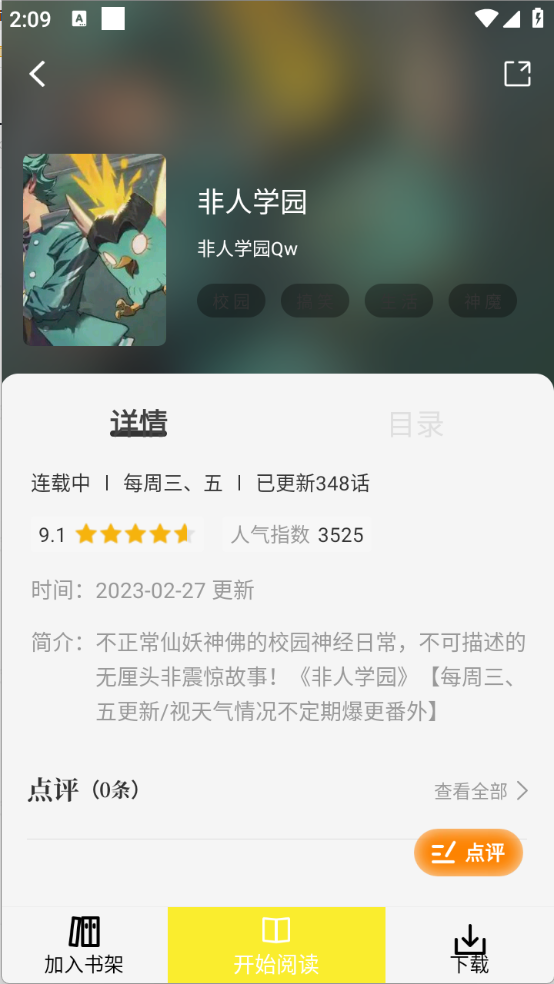 4、用户点开喜欢的漫画资源以后,可以加入书架、阅读以及下载。