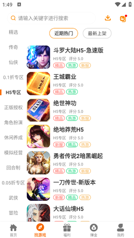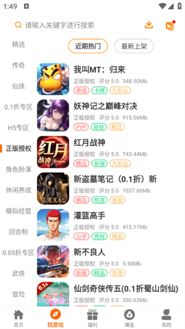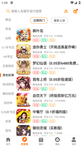 3、找游戏页面包含了很多的游戏资源板块,三国、传奇以及武侠等类型都有。