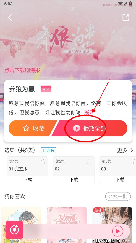 1、进入app之后,选择您想听的广播剧,如养狼为患;