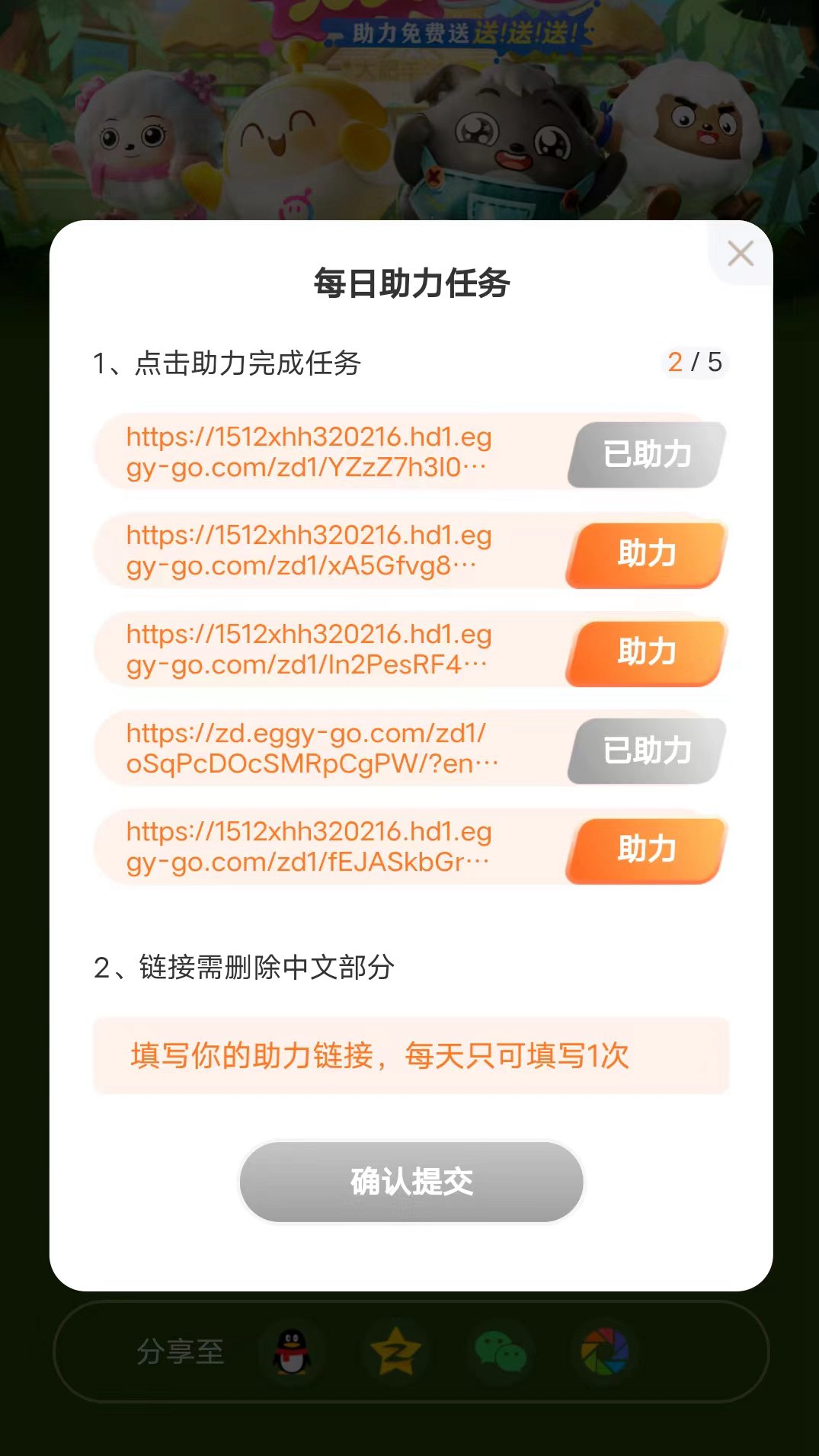 复制分享地址,用户可以将游戏内的助力任务分享地址复制,并粘贴至中,完成相应的助力任务。