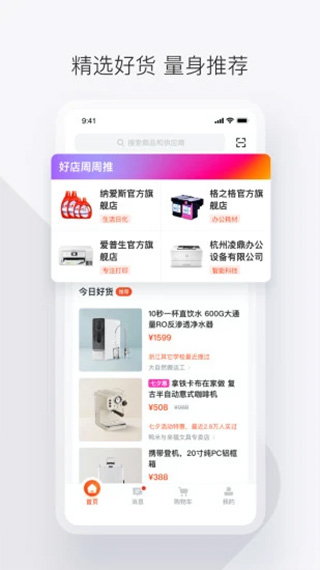 1、在首页顶部搜索框里搜索或按类目选择需采购的商品。