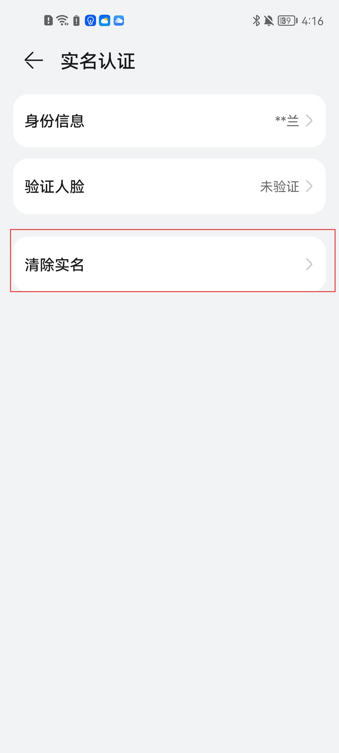 5、切换至新页面之后,点击清除实名这一选项。