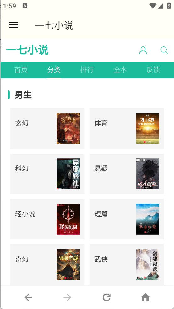 2、进入首页之后,汇集了超级多的小说资源,包括言情、科幻以及武侠等类型。