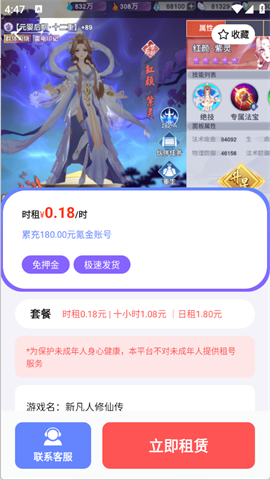 5、找到需要的账号之后点开,点击“立即租赁”即可。