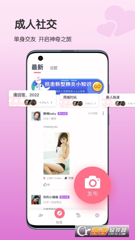 安全的社交圈,大家实名下载注册,拒绝任何的照骗行为,享受高端互动;