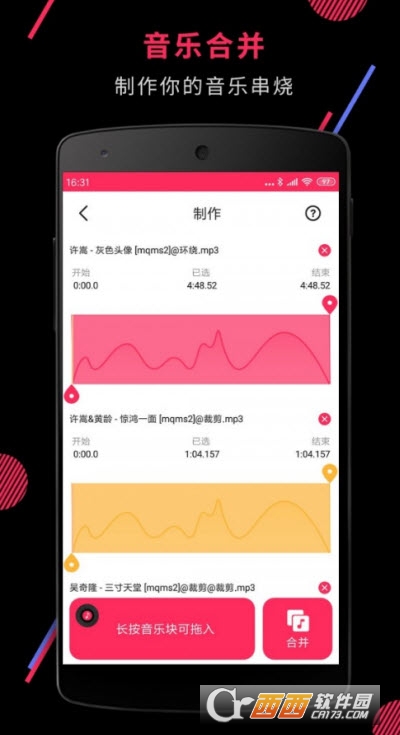 3、音频编辑大师是一款操作方便的mp3剪切合并器工具。支持对MP3文件进行任意时间段的切割,也可以把多段音频合并成一个文件。