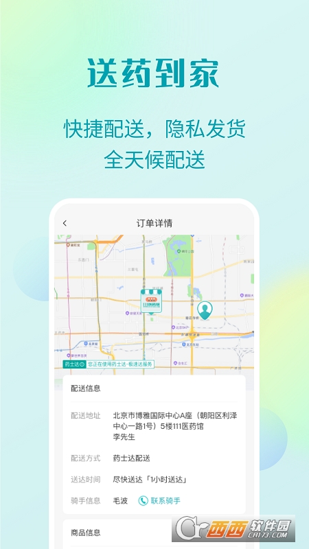 4、支持货到付款,并且有自己的配送队伍“药士达(目前仅支持北京望京地区)”,让您足不出户就能买到药。