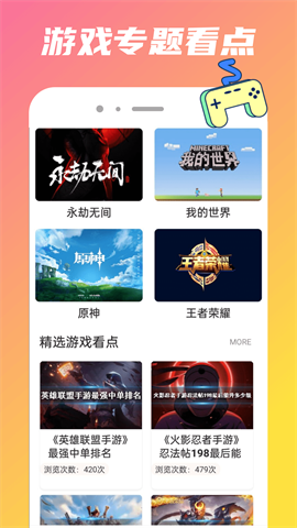 一款专门为游戏爱好者们提供的实用软件。你可以在应用中找到热门游戏的攻略指南、技巧和秘籍,超多游戏资讯让你快速获得各种分类专题游戏信息。各种分类小游戏剧情介绍及体验让你更好地掌握游戏的技巧和策略,无论你是新手还是老玩家,都能让你在其中有所收获。还有趣味猜猜乐园,挑战你的脑洞思维,快来体验吧!