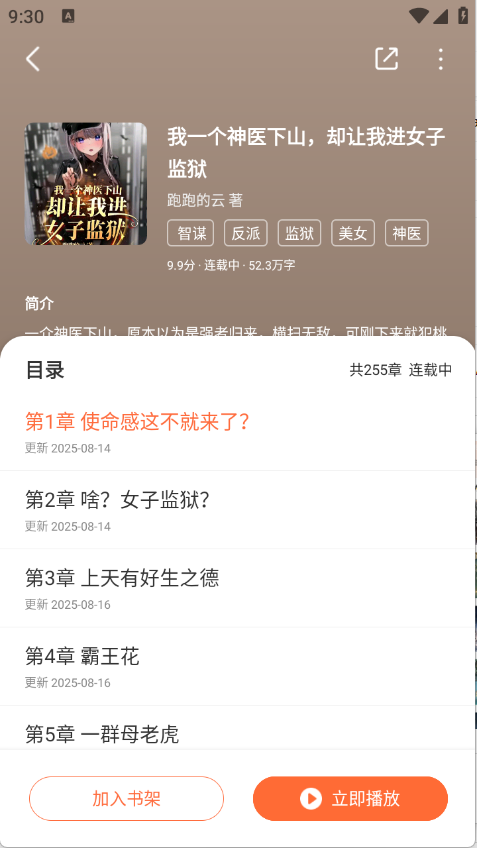 4、点开喜欢的小说进入到详情页,点击“开始阅读”。