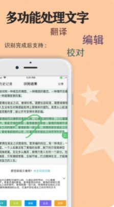 1.帮助用户智能的将图片里的文字识别出来,并且还能够翻译文字;2.批量识别,支持多张同时识别,自动选取识别内容提取文字;