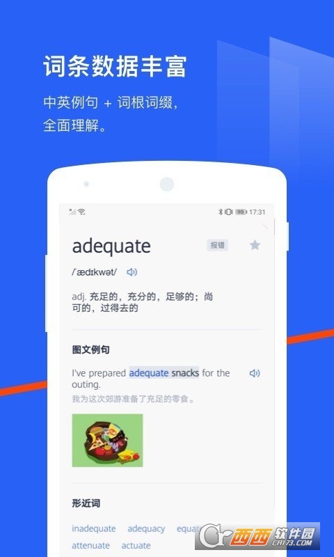 1. 15000+张单词卡片(不断增加中),全情景配图式记忆,全老外真人朗读例句。