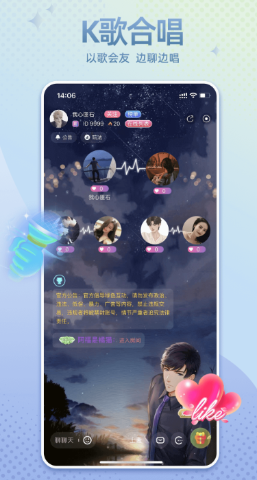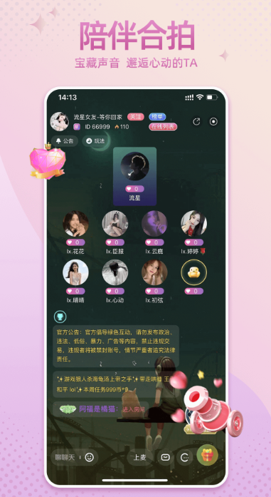 趣味语音互动交友也能让你体验到多人互动社交的乐趣,进入多人语音交友房间就可以享受到更加优质的交友服务,涵盖的交友玩法也很不错哦!