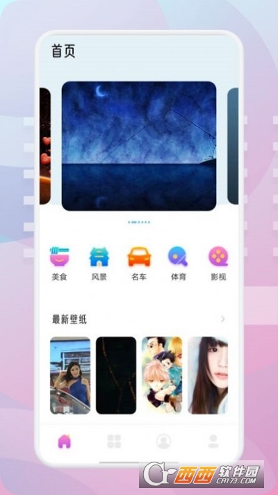 2、大量壁纸资源,美食、风景、名车、体育、唯美、动漫等分类;