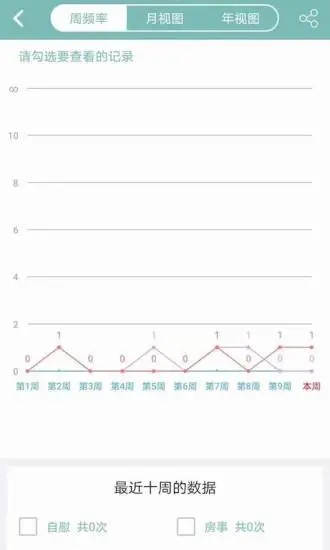【统计图表】提供周频率,月视图,年视图三种模式的图表,展示每项记录的持戒历程和趋势