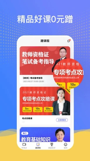 陪你考教师app是一个针对教师资格证群体打造的学习服务平台,汇聚了国内顶尖教师,在线直播讲解,为用户提供一对一的在线课程讲解,