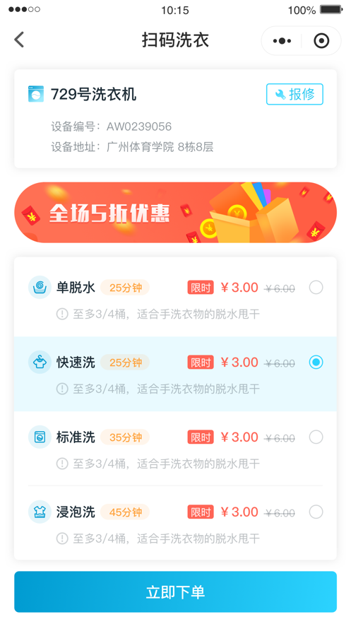 专注于提供校园洗衣服务的App,用户通过App即可体验便捷的洗衣服务。