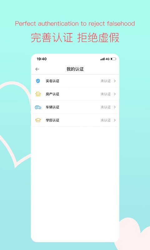 婚恋相亲,严格实名制、全方位认证的同城高品质婚恋交友的APP!是一家专注于以“一对一”婚姻介绍为核心,融合情感教育、心理咨询为一体的一站式软件。