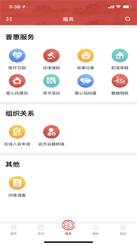 4、职工服务:困难帮助,工会帮扶系统;就业信息、职工互助保障、惠工服务