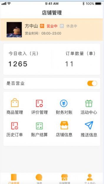3、【店铺维护】店铺信息维护,订单打印,提醒接单。