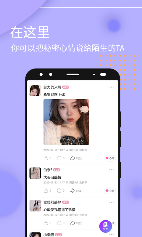 快速交友互动会很简单有趣,可以随时根据用户的需求来找到合适的交友对象,包含的所有交友互动玩法很不错哦,感兴趣的就来这里下载交友吧!