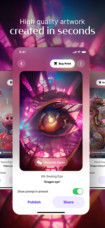 5、使用人工智能的力量创造美丽的艺术品!输入提示,选择一种艺术风格,观看WOMBO Dream在几秒钟内将您的想法转化为人工智能绘画。