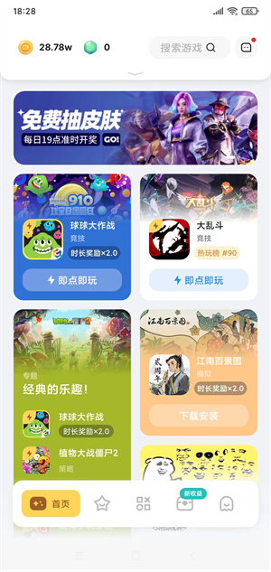 游乐元APP-是一款游戏平台工具,通过游乐元玩游戏,休闲娱乐的同时还能获得金币、宝石等奖励,更有抽奖活动随时参与,热门游戏皮肤/道具免费抽。