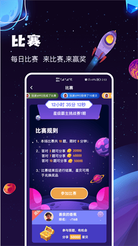 你也可以赢得丰富的奖励,按成绩瓜分比赛星贝,成绩越好星贝越多,获得星贝,兑换奖品,获得积分,升级段位,积累成就,等等多重奖励,尽管来拿。