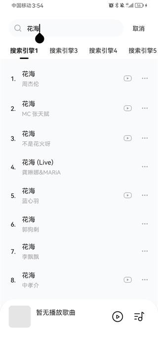 输入歌名进行搜索,可以切换多个搜索引擎以找到不同版本的歌曲。