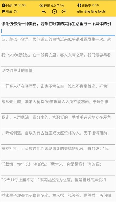 3、进入练习,开始打字,上面有计时和打字速度以及正确率