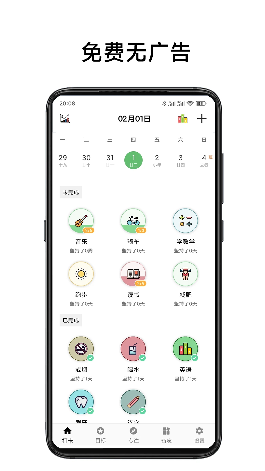 在创建目标时,您需要为目标命名(如“每天跑步5公里”、“每日阅读半小时”等),并选择开始日期、结束日期(如果适用)以及打卡频率(每天、每周、每月等)。