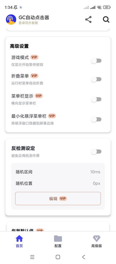 4. 探索和启用高级功能:VIP版GC自动点击器附带了一系列增强型特性,例如计划性点击、重复循环点击以及手势指令自定义等。依据个人需求深入挖掘这些高级设置项,并加以配置。