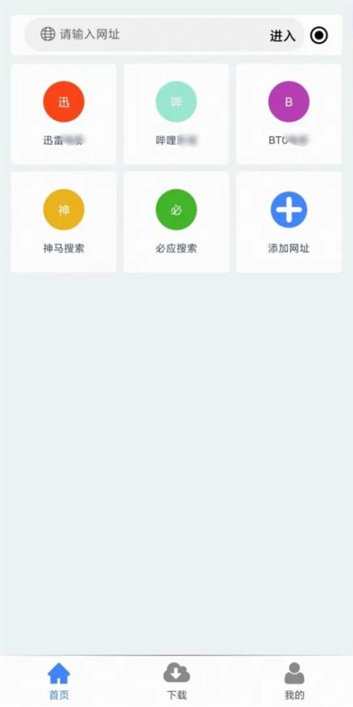 2、点击首页“浏览器”图标进入后可以看到已经自带了几个资源搜索网站