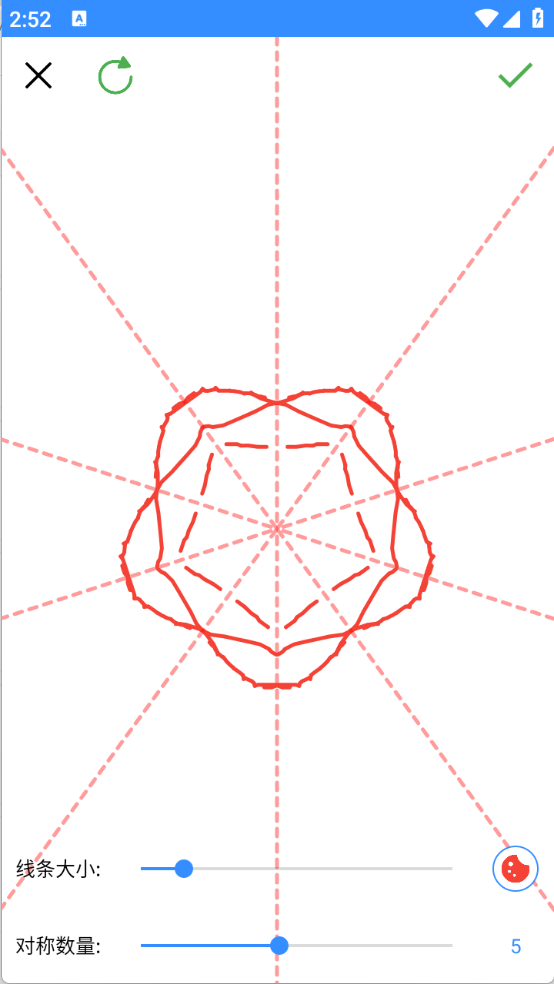 3、如果想要对称绘画,可以设置线条大小以及对称数量以及画笔颜色进行绘画。