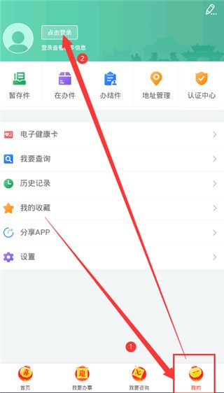 2、进入我的个人中心,点击登录