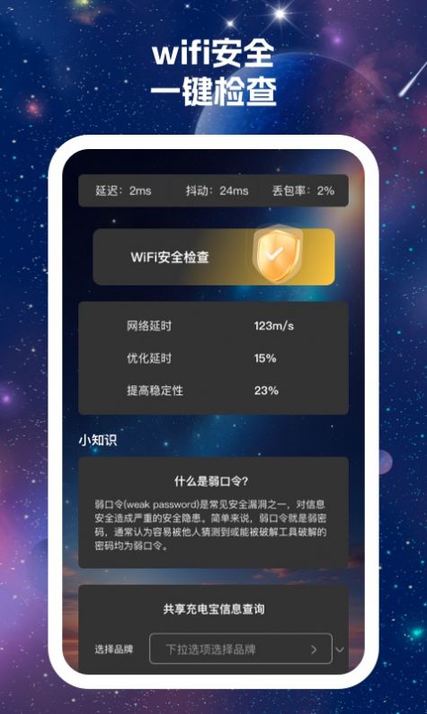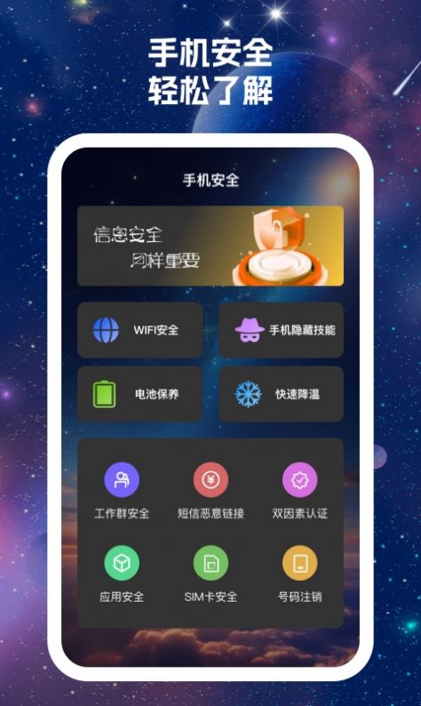 7星手机卫士是一款集合了多种实用功能于一体的智能手机工具软件,旨在为用户提供便捷、高效且安全的全方位服务体验。只需轻点一键,即可实时检测并优化Wi-Fi信号状况,让用户随时随地掌握无线网络的质量与稳定性。此外,该软件还具备强大的安全检查模块,能有效预防潜在的网络安全风险,切实保障用户在使用移动设备上网时的数据隐私和系统安全,让用户的数字生活更加无忧无虑。