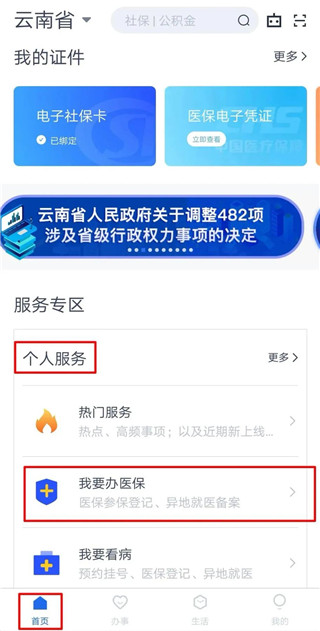 1、点击“首页”--“个人服务”选择“我要办医保”