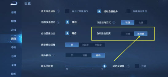 1,首先我们需要来说一下玩韩信上的一些细节,在玩韩信的时候,尽量将自动追击的距离设置为近距离,如果不设置的话,在蹲草丛的时候,很容易走出去的。