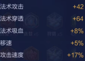 这里建议的铭文搭配是10凶兆+5贪婪、5狩猎+10心眼,高额的攻击速度能够快速的打出更多的普攻伤害,并且具有吸血效果,毕竟,这个英雄的主要输出还是靠普攻。
